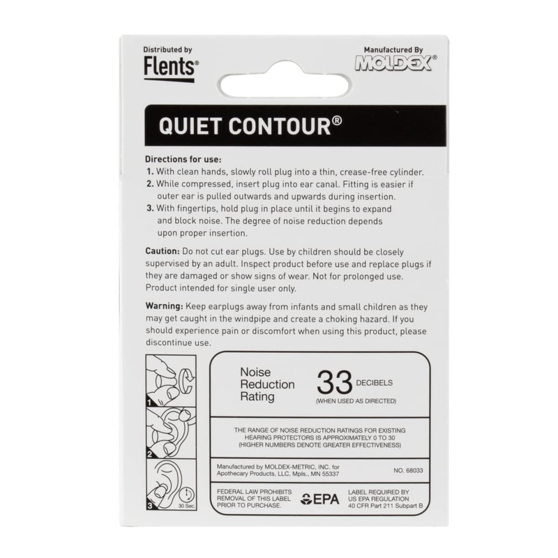 The Flents Quiet Contour ear plugs offer hearing protection from construction, heavy machinery, hand tools, music and other loud environments. Also great for creating silence when focus or concentration is needed. CONTOUR SHAPE & COMFORTABLE FIT - The ear plugs are made of a soft foam that sits comfortably in the ear. Ear plug foam compresses quickly for easy insertion. Specialized contour shape creates a snug and comfortable fit in your ear 20 PACK - Product comes in a convenient pack of 10 pair NOISE REDUCTION RATING - Ear plugs rated for 33 decibels SAFE TO USE - Product is safe to use and designed to keep your inner ear safe when inserted