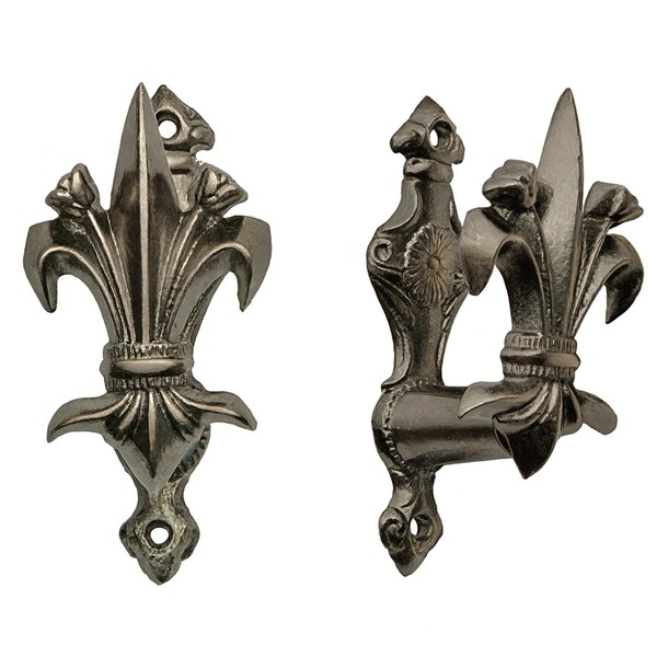 SZCO 3” Fleur de Lis Sword Hanger Wall Mount – Set of 2 Expandable Pewter Finish Hook Set for Swords & Daggers– Decorative Wall Stand, Katana Wall Mount, Sword Holder & Gun Rack with Hardware