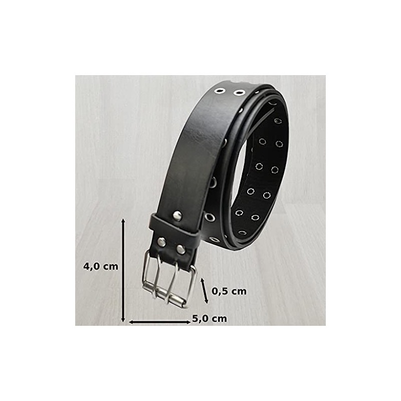 flevado Double 2 Hole Belt in Various Colours Double Hole Rivet Belt, black