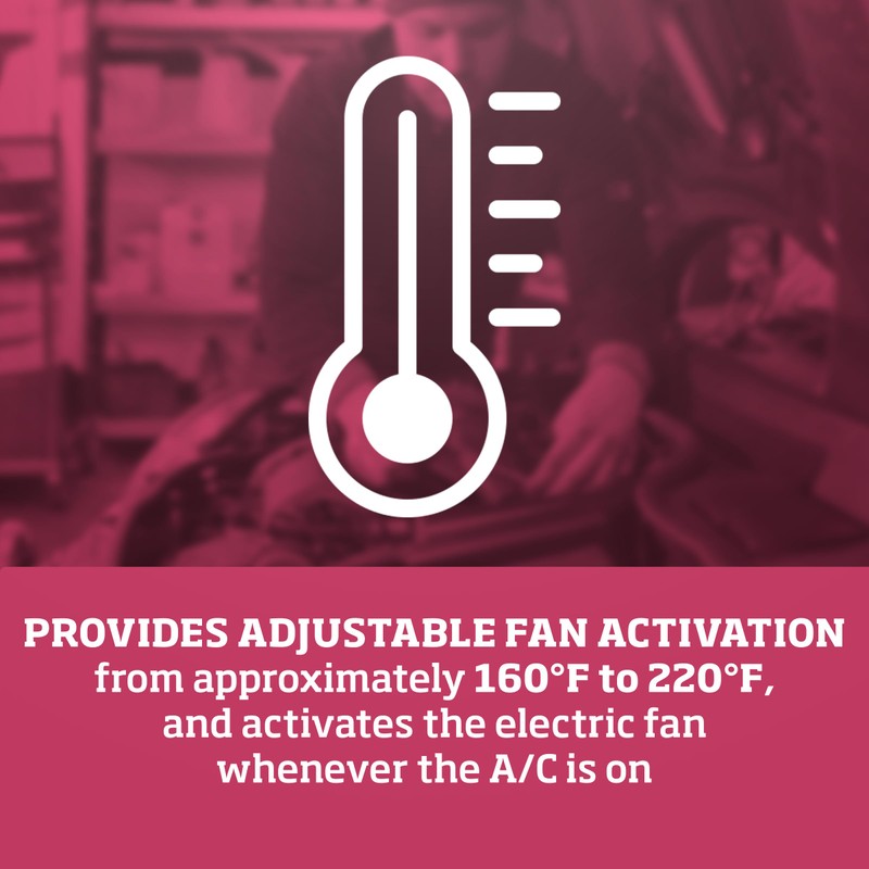 - Car parts fan controller provides adjustable fan activation from approximately 160 to 220 degrees Fahrenheit and activates the electric fan whenever the A/C is on for optimum A/C performance and engine cooling