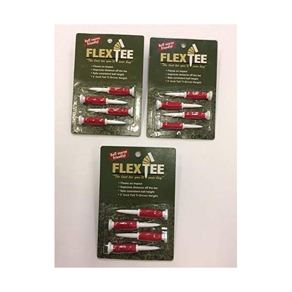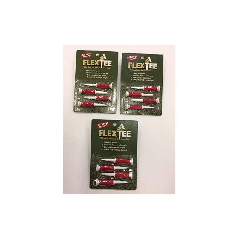 3 inch long red driver tees, 3 pack special, 12 tees Designed to make every golfer of any handicap better by adding distance to each tee shot. Improves the consistency of your game. The built-in stops allow your ball to be set consistently at the optimized height for each iron, fairway, or driver tee shot you make.Three heights of FlexTee make setup simple and easy. With patent pending "Flexible" design, FlexTee reduces drag and gives every shot incredible distance and accuracy.