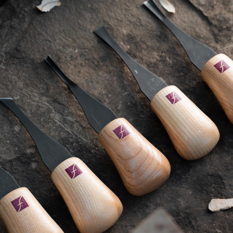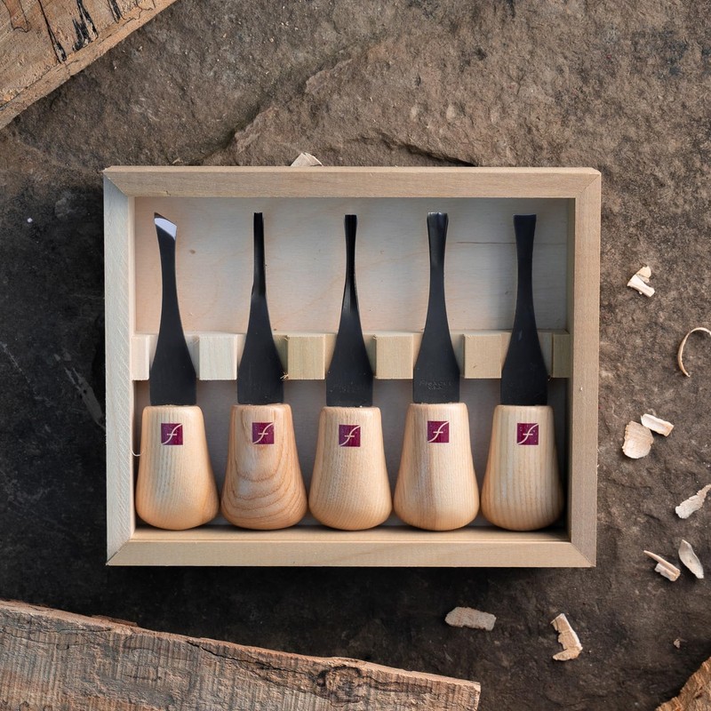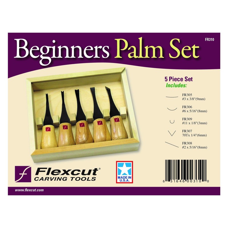 Flexcut Wood Carving Tools Beginners Palm Set of 5, FR310 Ash Hardwood Handles,1095 High Carbon Steel Blades, Box Included | Made in the U.S.A.
