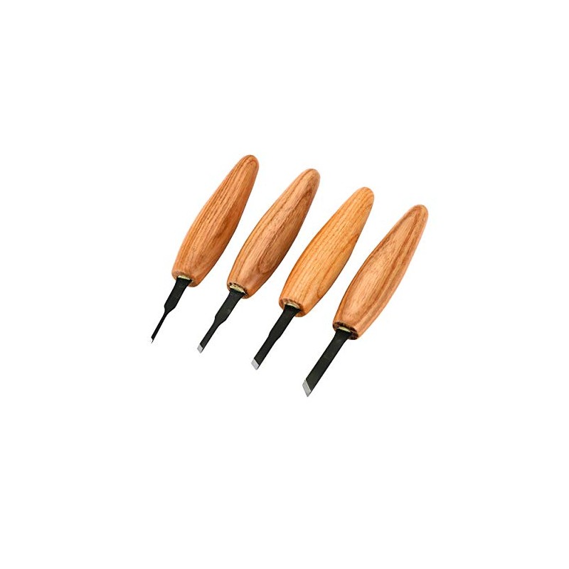 FLEXCUT Carving Tools, Skew Micro Tool Set, High-Carbon Steel Blades, with Solid Ash Handle, Set of 4 (MT200)