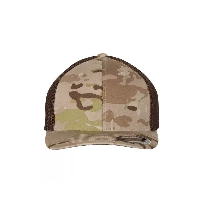 FLEXFIT 6511 - Fitted Trucker Cap, Mesh Back, Baseball Hat, Camo, Multicam Arid/Brown