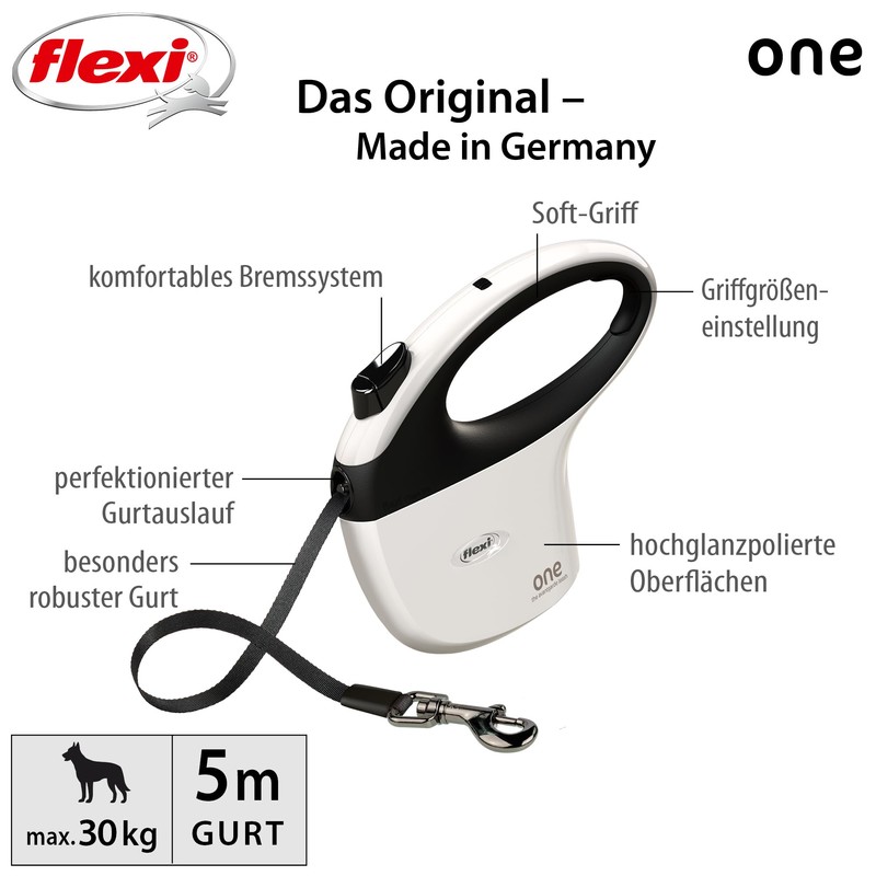 - 5m retractable leash for dogs up to 30kg, providing flexibility and control when walking.