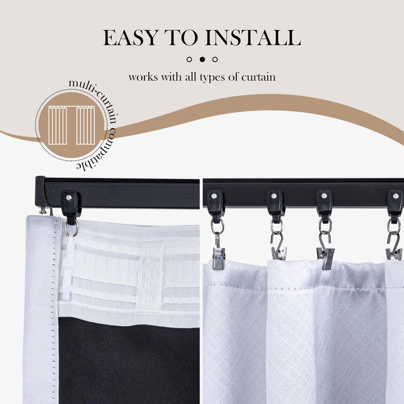 - Curtain clip: The stainless steel curtain clamp bite is very good, which can clamp any curtain, so that the curtain track can not only match the ceiling curtains, but also any form of curtains, so as to save you the trouble of matching curtains
