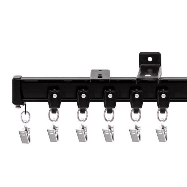 Flexible Ceiling Curtain Tracks, Ceilings Track for Curtains, Aluminum Curtains Track Ceilings Mount,Wall Mount Curtain Rail, Ceiling Curtain Rod, Sliding Curtain Tracks with Clips (Black 6FT)