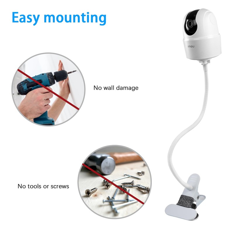 Flexible Gooseneck Clamp Mount for Imou 2K/2.5K WiFi Security Camera (White)