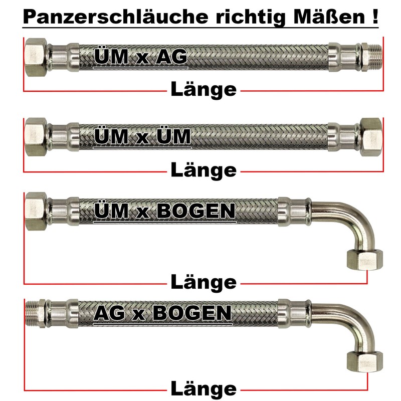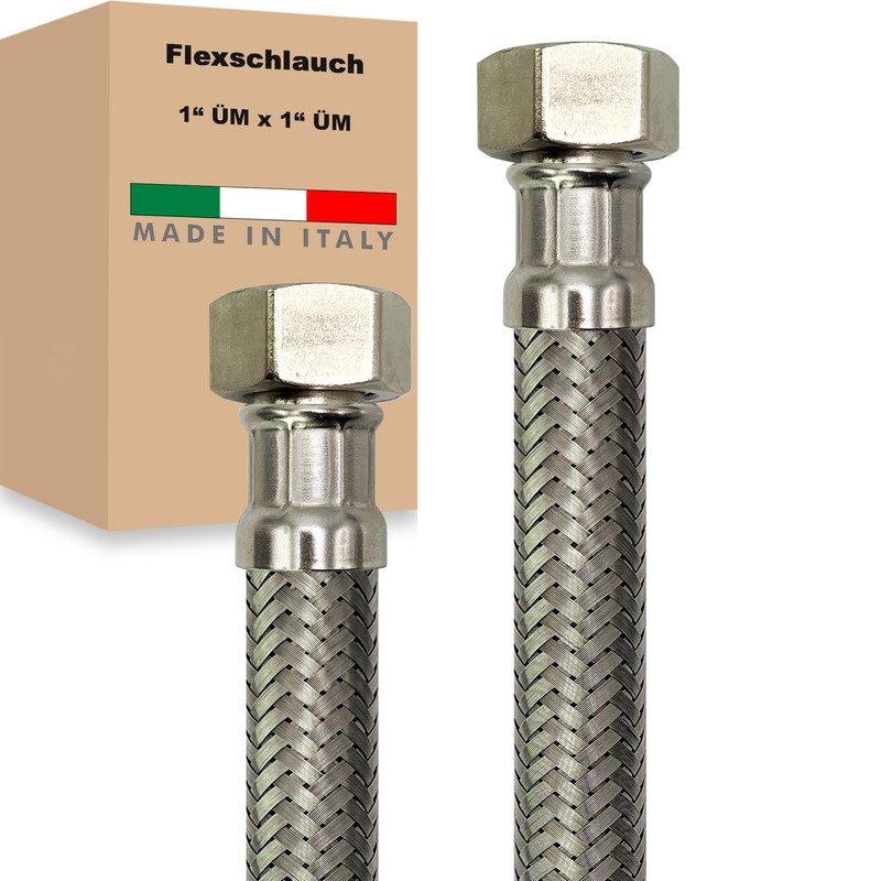 Flexible Hose Nut x Nut Stainless Steel Reinforced Hose Connection Hose Sanitary Tap Hose Domestic Water System Made in Italy (1 Inch x 1 Inch - 1000 mm)