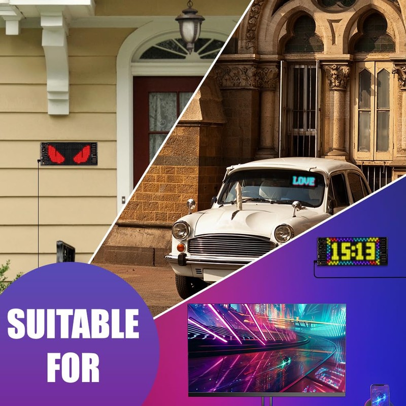 Flexible LED Sign Programmable Scrolling Text & Animation Display, USB Powered, APP-Controlled LED Panel for Cars, Shops, Bars, Parties, Weddings, Festivals – 7"x3" RGB Matrix