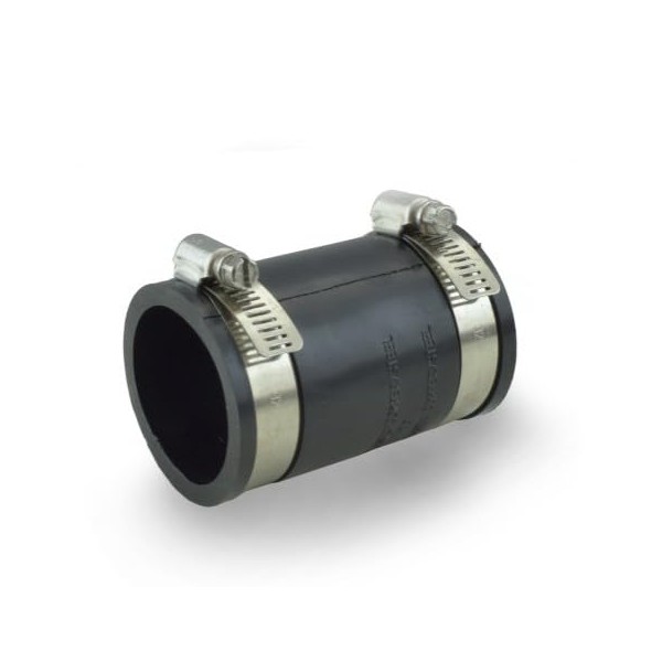 Flexible PVC Coupling With Stainless Steel Clamps, 1.9" Inner diameter for 1-1/2" Nominal Pipe, Black