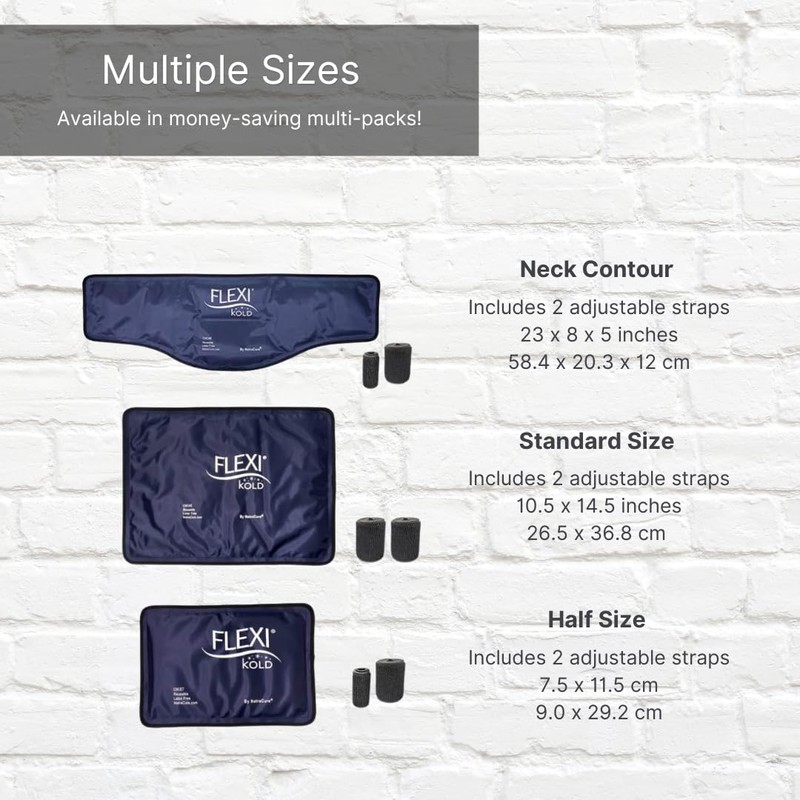 FlexiKold Gel Ice Packs w/Straps (Standard Large) - Two (2) Reusable Cold Therapy Compresses (for Pain and Injuries, Wrap Around Knee, Shoulder, Back, Ankle, Neck, Hip, Wrist) - 6300-STRAP-2PK by NatraCure Store