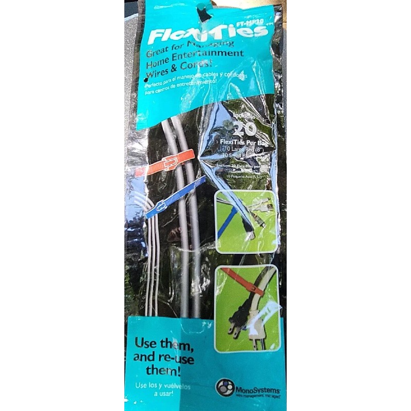 Mono-Systems ~ FlexiTies 20-Pieces, 0.25"x8inch Multi-Color Plastic Cable Ties FT-MP20.