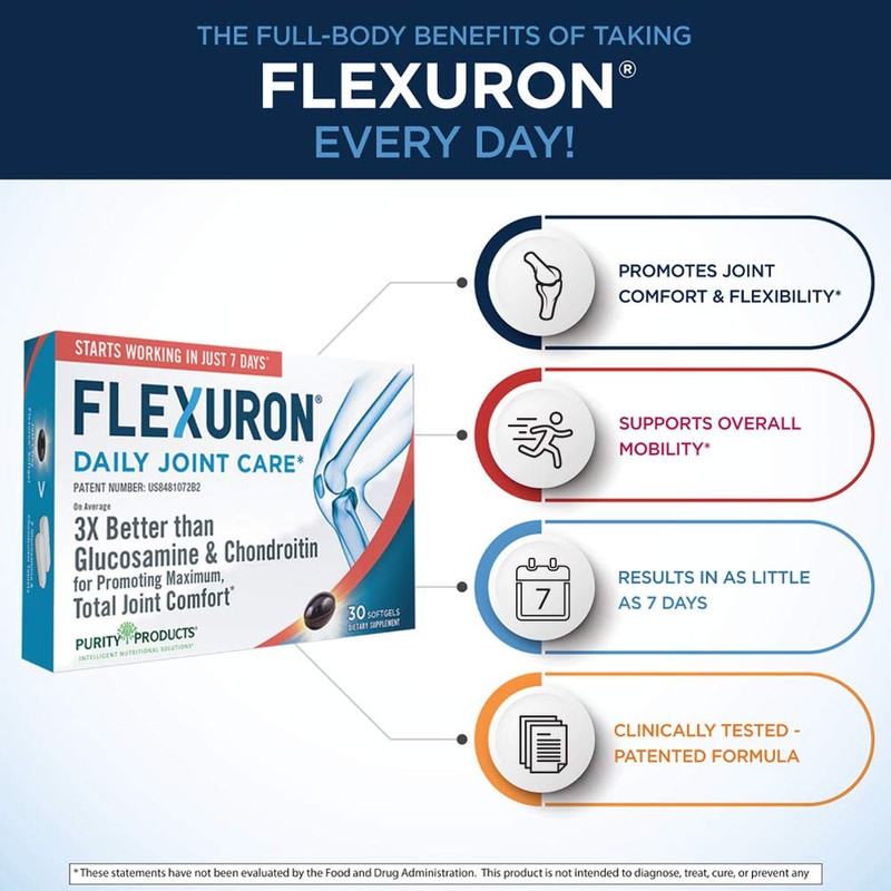 • CLINICALLY-TESTED RESULTS — A double-blind, placebo-controlled clinical study showed Flexuron to be 3X Better Than Glucosamine and Chondroitin for Supporting Joint Health.