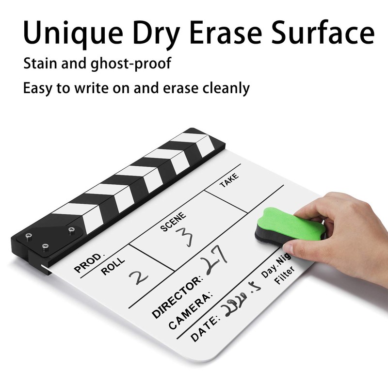 - Easy Cleaning and Writing - It is made of white acrylic and designed to be written used with dry erase markers. Great gift for directors , film fans or for film and televison, photography enthusiasts