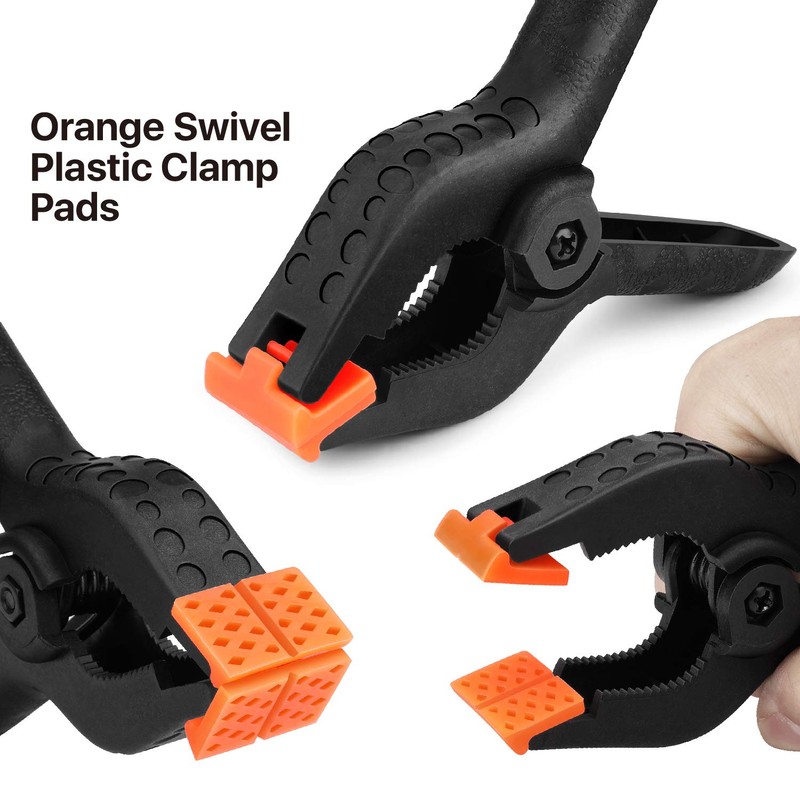 Our multi-purpose nylon spring clamp should be your best solution! It is mainly used to clip and attach paper, cords, sheets, and other items together. It is constructed of reinforced nylon for strength and features swivel pads at the ends to adjust to irregular shapes without marring the surface. It is a great spring clamp for arts crafts carpentry, photography studio backdrops, green screens, and countless other versatile indoor uses. Temporarily secures plastic sheeting, tarps, covers, fabric, and photography backdrops.