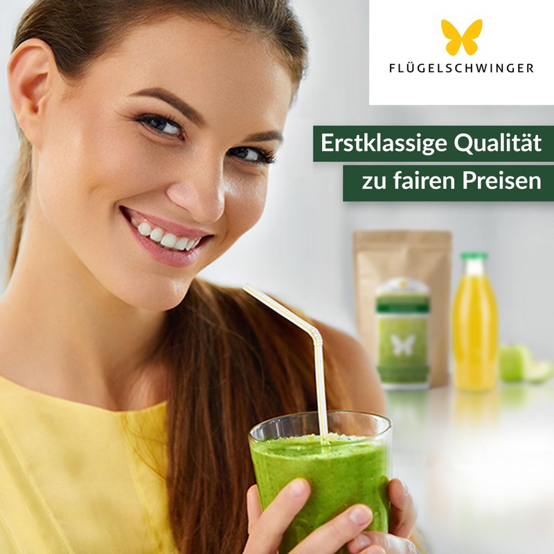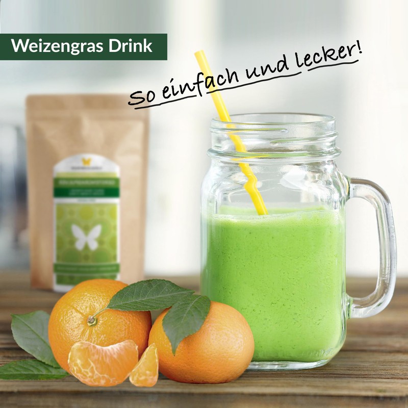 - FLEXIBEL EINSETZBAR - Weizengraspulver schmeckt besonders lecker als Mixgetr?nk mit Orangensaft oder auch als grner Smoothie mit Bananen und Frchten der Saison. Schon eine kleine Menge gengt, um Ihre Speisen schnell und einfach aufzuwerten. Geben Sie je nach Bedarf ein bis drei Teel?ffel Weizengraspulver t?glich in Ihre Getr?nke oder Speisen. Einfach einrhren und genie?en!