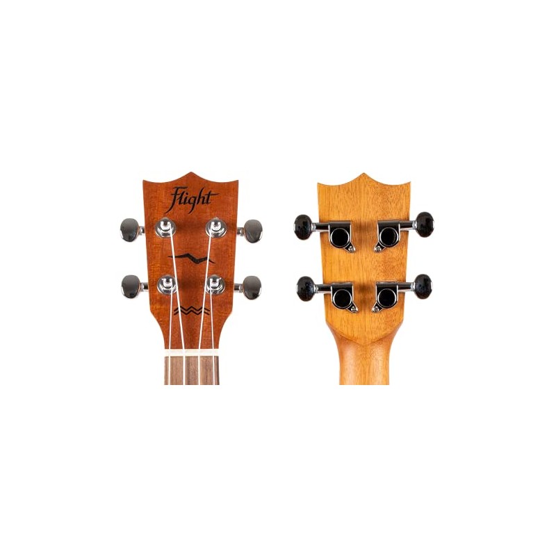 - Features a carefully-designed headstock fitted with geared tuners