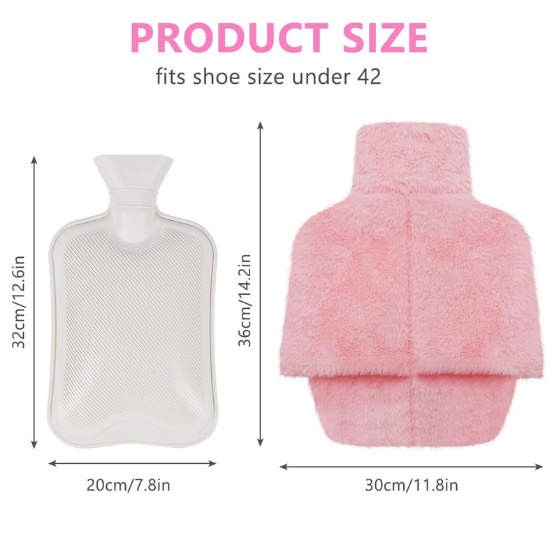 • Large capacity design: the foot warmer with hot water bottle bag has a capacity of 2 litres and is suitable for feet up to size 42. It fits perfectly for most adults. The wide neck design of the foot warmer makes it easier to pour hot water and makes it safer and more comfortable to use. Note: The hot water injected should not exceed 2/3 and the temperature of the hot water should be kept below 80 degrees.