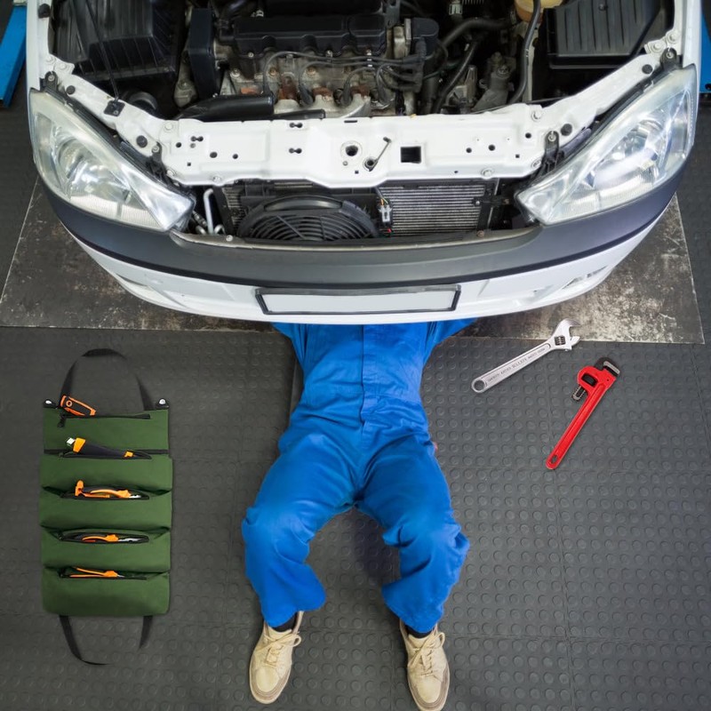 • 【STABLE ZIPPER AND HANDLE】: The zipper is reinforced and cannot be easily damaged. With sturdy handles and 1 seat belt buckle, it is super easy to roll up and carry and provides quick and easy access to your tools and small accessories.