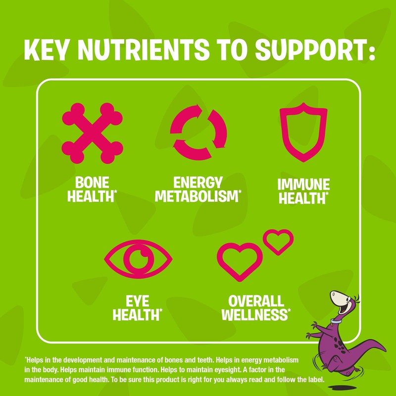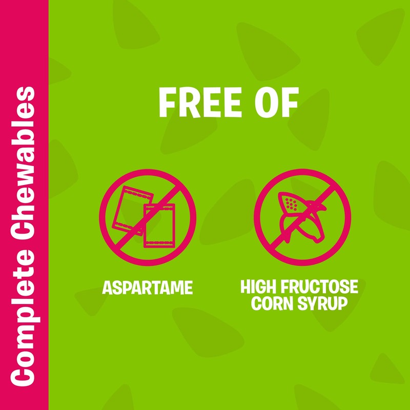 - Great tasting fruit flavours, aspartame-free and easy-to-chew children's multivitamin in fun character shapes