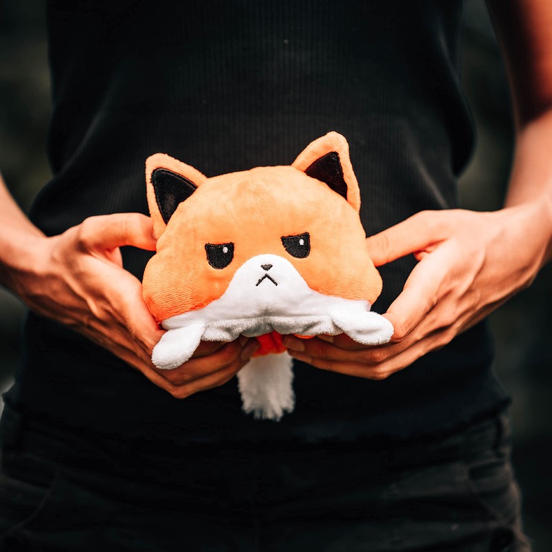 Flip Plush Toy - Soft Cuddly Toy with Changeable Mood - Double-Sided Design to Reverse - Reversible Plushie - Easy Flip with 2 Emotions in Love & Evil (Fox)