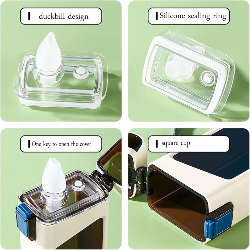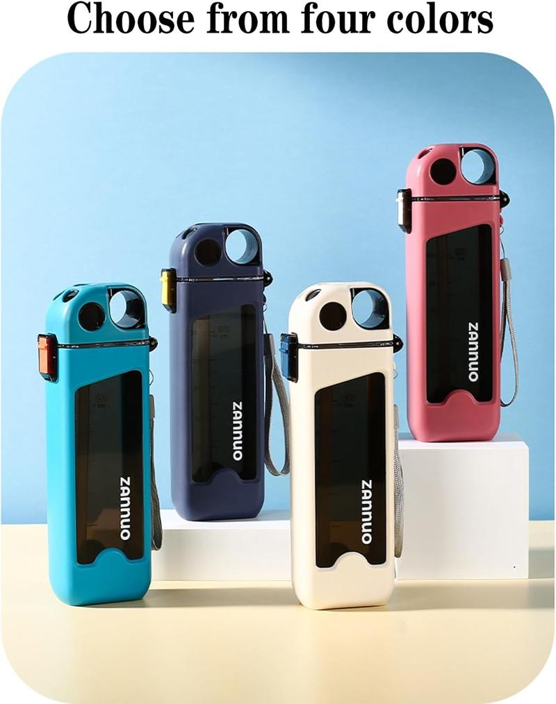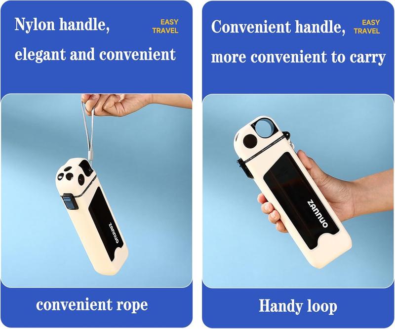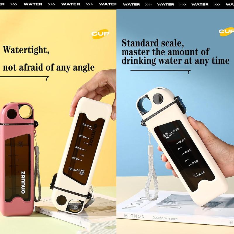 Flip-top straw square plastic water bottle 12oz, food-grade cup body pc and lid pp, BPA-free, duckbill design, silicone seal, one-button lid opening, square mouth, convenient nylon carrying ring Drinkware Mug - Color: Pink
