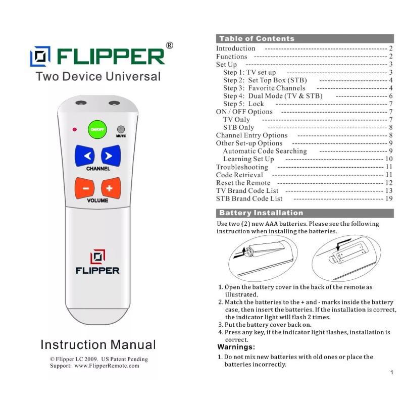 Flipper is easy to sync up with your TV and Cable Set Top Box, and with a 30 channel capability there's enough room for all your favorite channels. Plus, it locks to avoid accidental reprogramming.