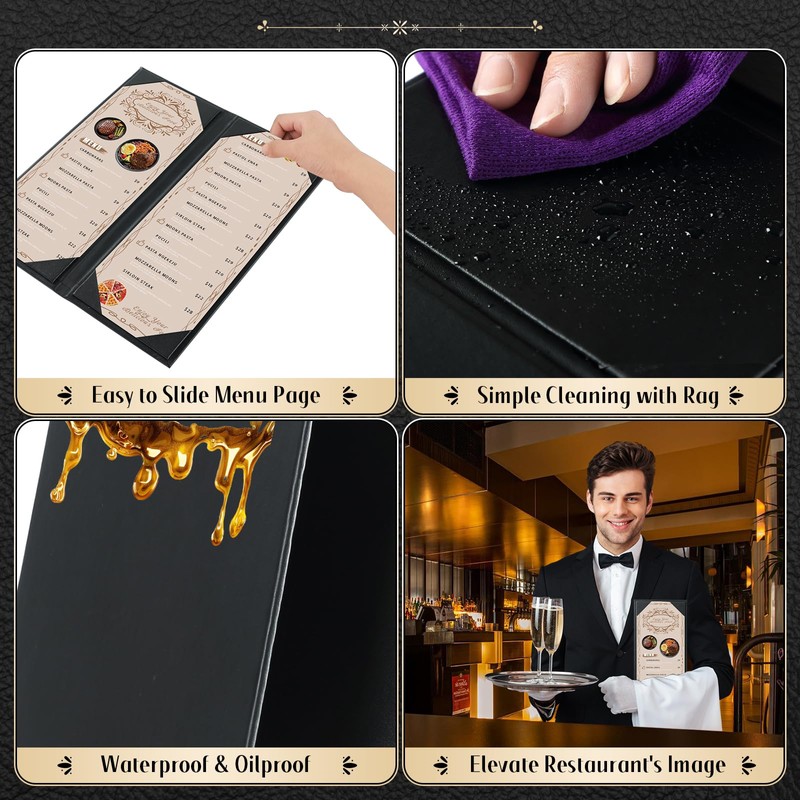 - Premium Material: Menu cover is made of high quality PU leather.This model has sealed edges that ensure its durability through extensive use.
