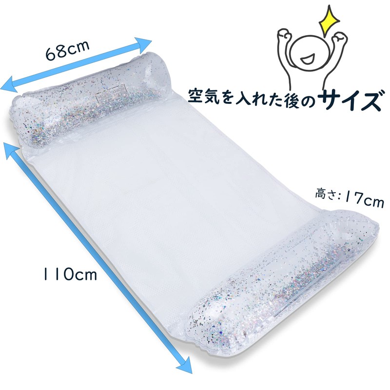Float, Hammock, Float, Float Bed, For Adults, 51.2 x 27.6 inches (130 x 70 cm), Clear, Stylish, Float with Backrest, Mesh Material, Strong Buoyancy, Foldable, Water Play, Sea, Summer, Pool, Beach, Summer, Pool Party