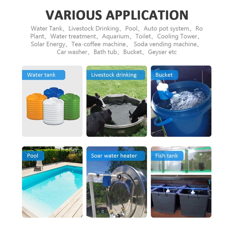 - Widely application: this float valve widely used in water tank, water tower, swimming pools, solar energy, tiolets, aquaculture, livestock drinking water, etc.