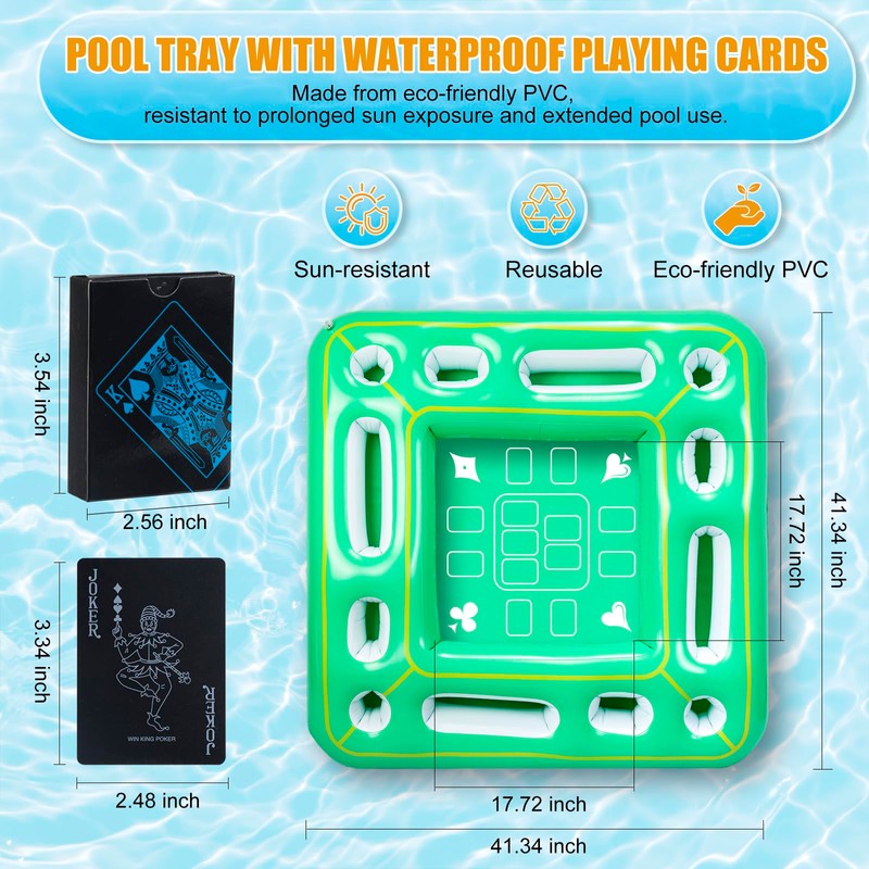 - Includes Waterproof Playing Cards: Comes with a deck of plastic playing cards, ready for immediate use in the pool—no need to search for extra accessories. The waterproof cards can withstand epic water battles, making them perfect for lakeside party games or teaching kids classic card strategies under the sun. Never worry about missing out on party fun!