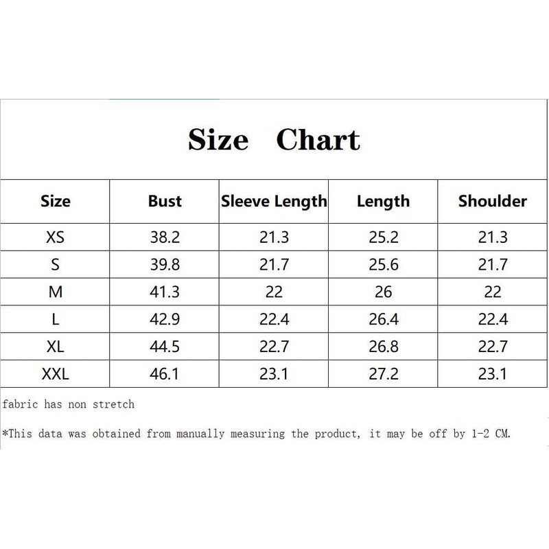 X-Small: Shoulder:21.3inch, Bust:38.2inch, Length:25.2inch, Sleeve Length:21.3inch