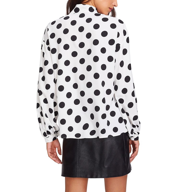 - Lantern long sleeve, bow tie decoration, polka dot blouse
