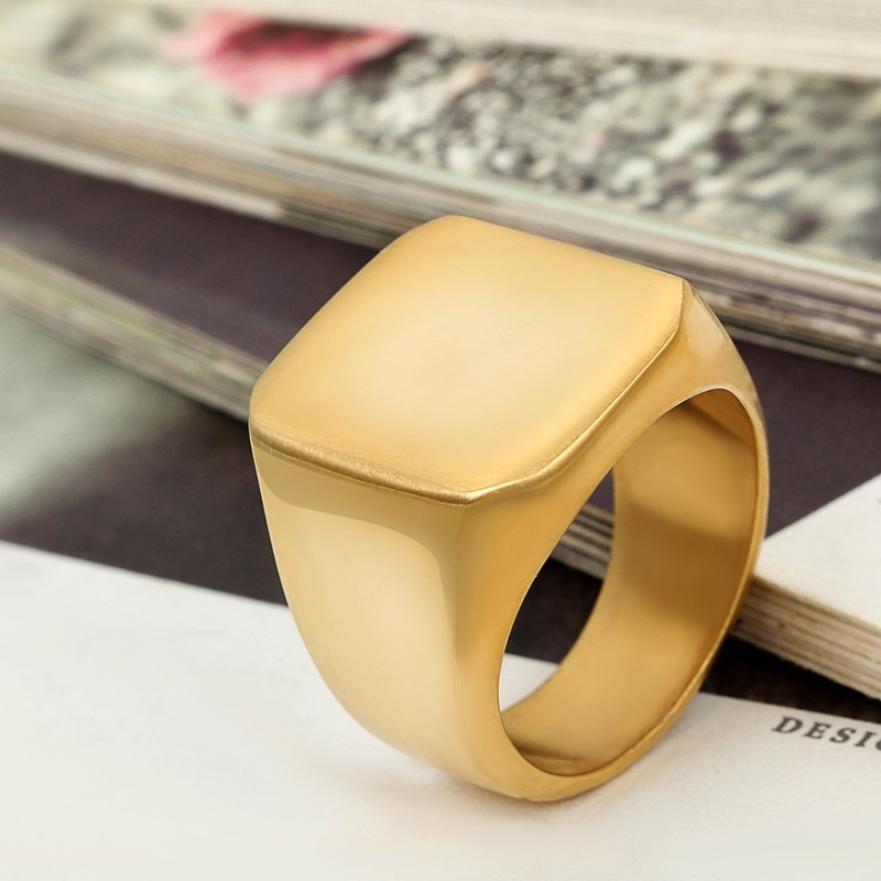 Flongo Men's Gold Plated Stainless Steel Ring, Classic Gold Polished Signet Ring, Heavy Biker Ring.