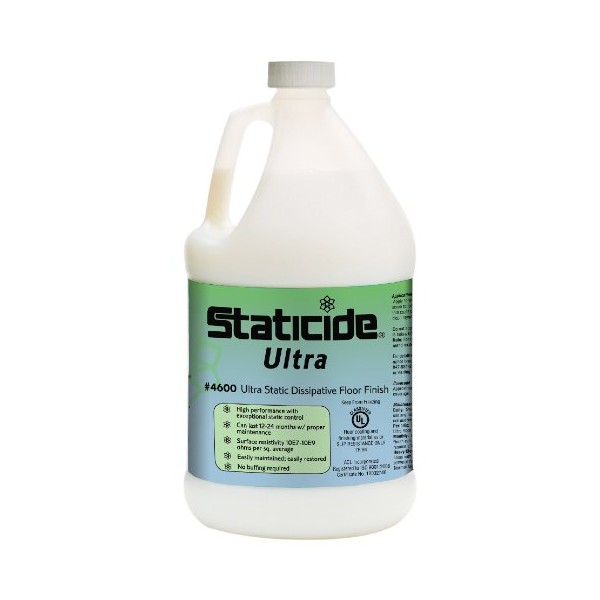 ACL Staticide high quality, high performance, extended stripping cycle floor finish. No other ESD floor finish can match Staticide ultra for electrical properties, physical longevity and gloss. Staticide ultra utilizes the latest technology in static dissipative polymers that act on a molecular level. This enhances its static control ability and effectiveness, and maximizes the stripping cycles. 1 gallon bottle.
