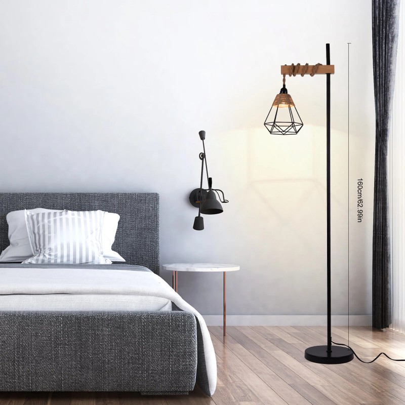 Floor Lamp Standing Reading Light Rattan Lampshade Height Adjustable+Foo