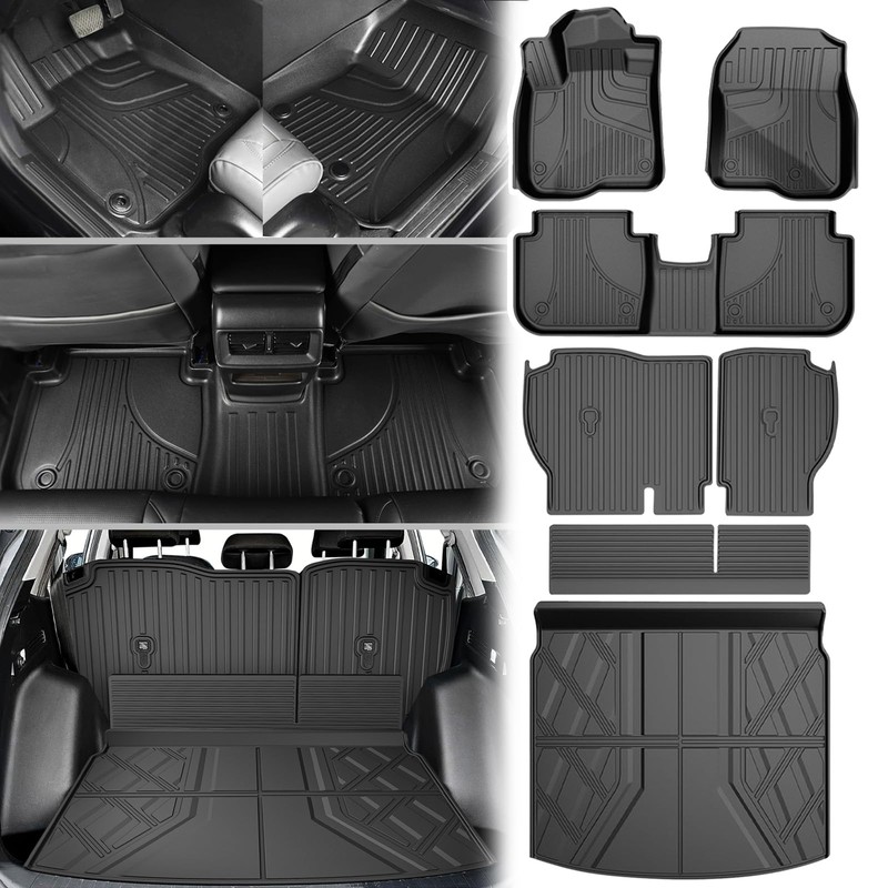 Protect your vehicle’s floor and cargo area with custom-fit floor liners & cargo mat, designed for durability, easy cleaning, and a perfect fit. Made from TPE material, AOMSAZTO floor liners and trunk mat offer resistance against spills, dirt, mud, and wear, keeping your SUV trunk cargo space or rear seat back pristine.