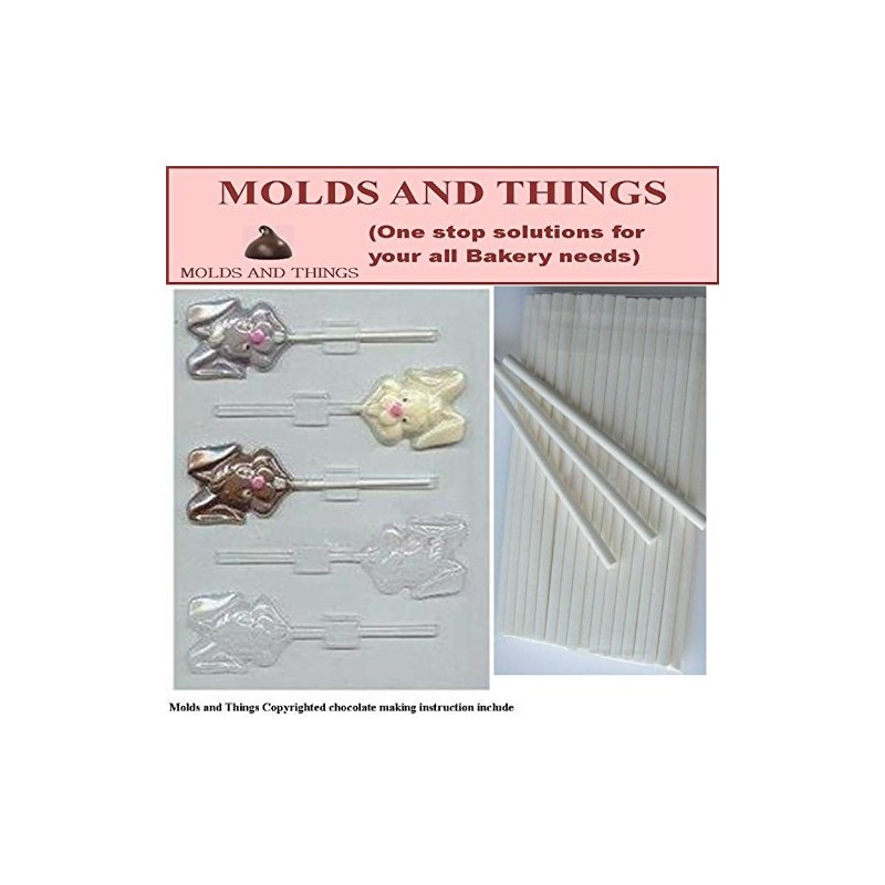 FLOP-EARED BUCK TOOTH Lolly Chocolate Candy Mold With Candy Making Instruction and WITH 25 Lollipop Sticks