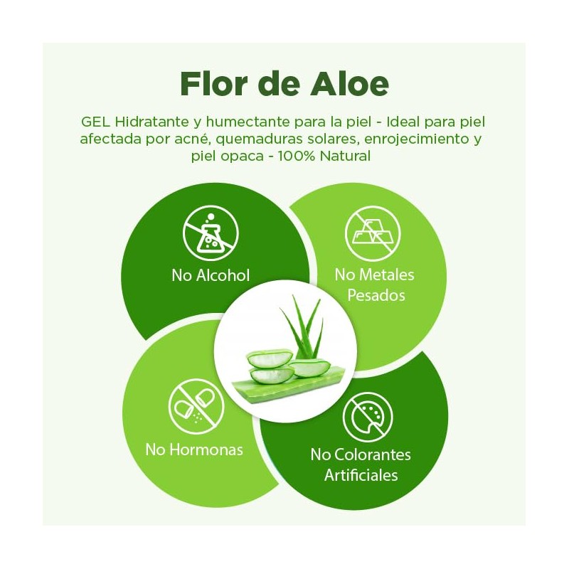 - Hidratante Intensivo: El Gel Flor de Aloe ofrece una hidratación profunda que deja la piel flexible y brillante.