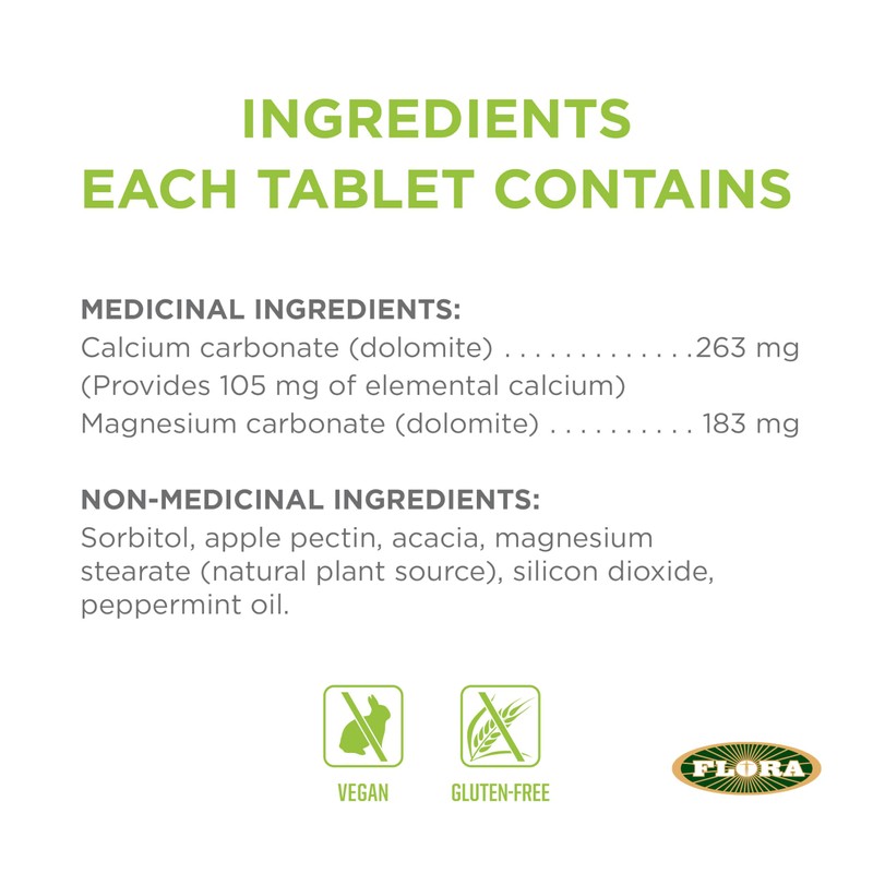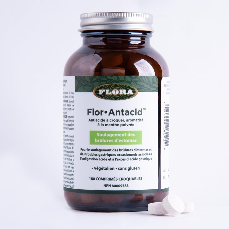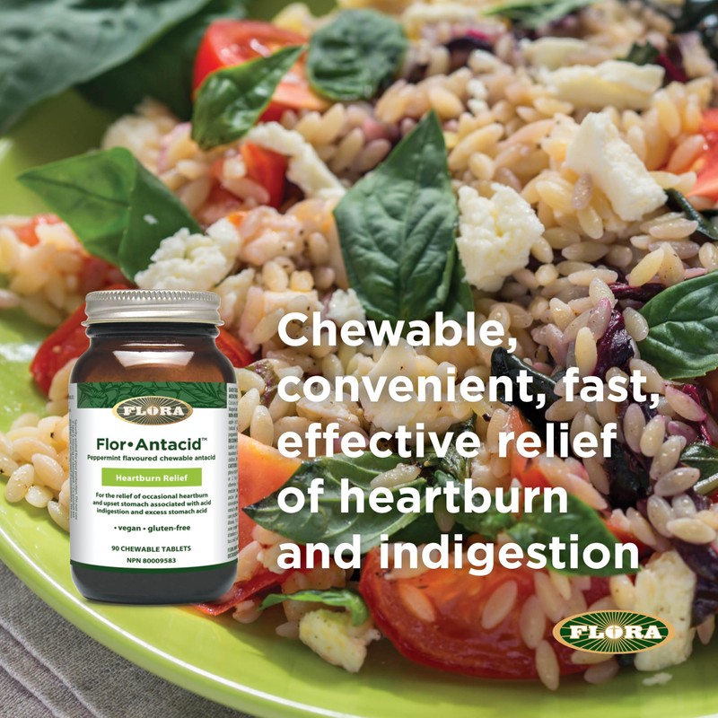Flora Health Flor-Antacid - For the Relief of Occasional Heartburn and Upset Stomach Associated with Acid Indigestion and Excess Stomach Acid Real Pepperemint Oil Flovoured 180 Chewable Tablets