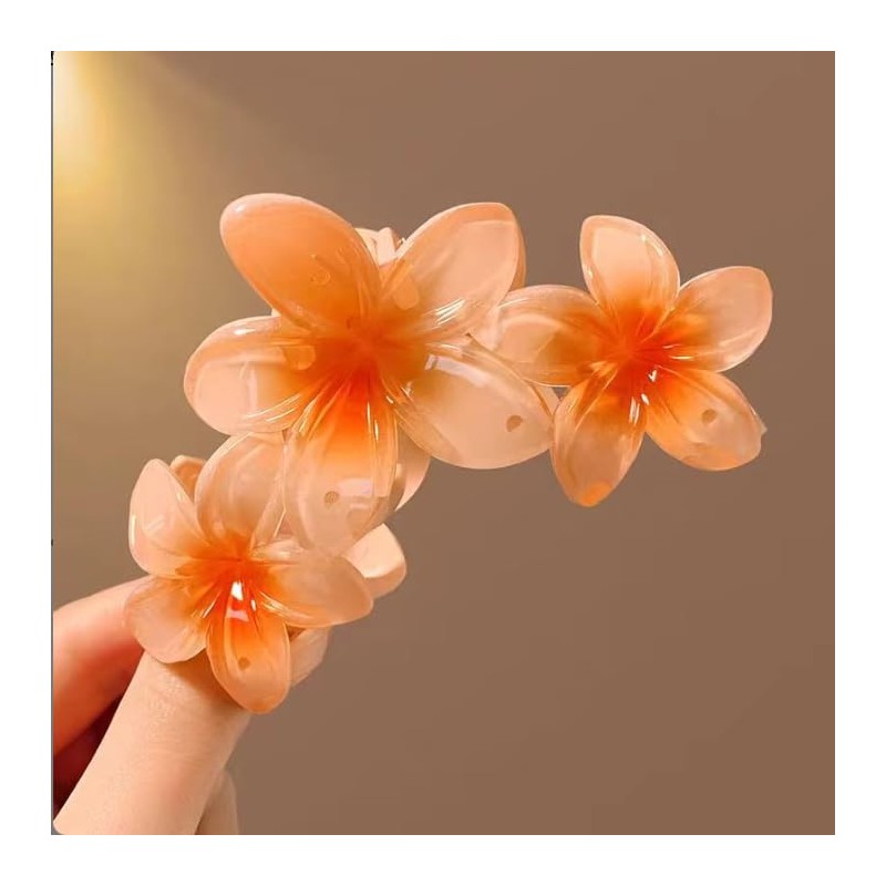 Floral Hair Claw Clips, Multi-Colour Summer Flower Design, 2-Pack (Vibrant Orange/2pack)