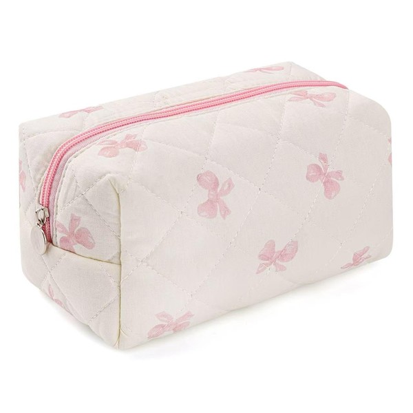 Floral Makeup Bag,Floral Quilted Make Up Bag,Large Cosmetic Bag,Fashionable Travel Makeup Pouch, Cute Portable Storage Bag,Puffy Coquette Makeup Bag, Attractive Quilted Pouch