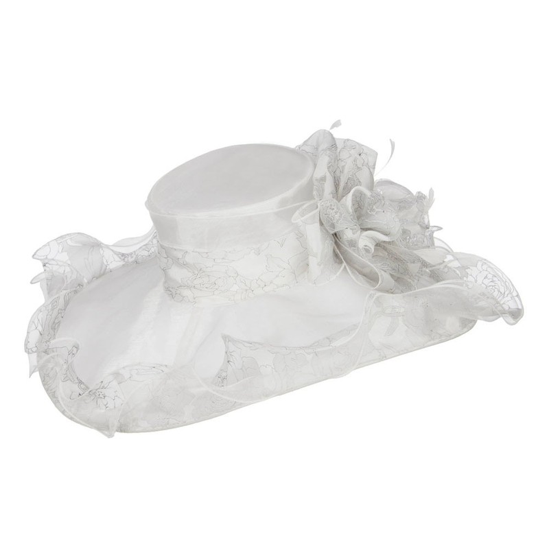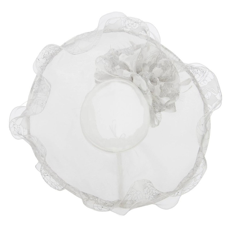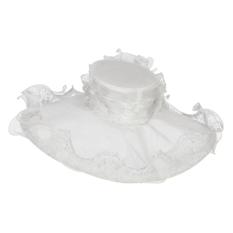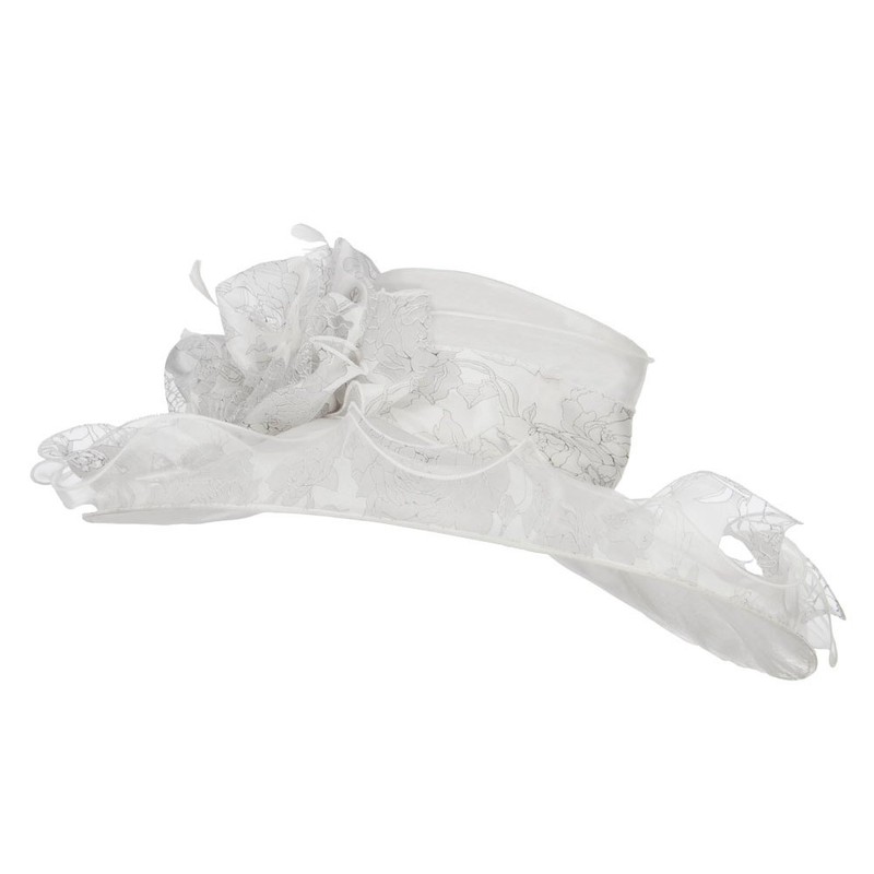 Floral Ruffle Brim Organza Hat - White OSFM