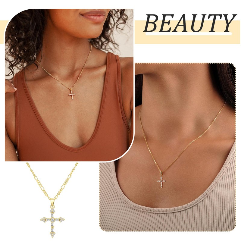 - Design This everyday gold cross necklace for women brings you the protection of the Holy Spirit, the exquisite cross pendant preserves your faith in the heart, when you step into the sunlight or the light falls on your chain, it will sparkle and easily bring you compliments from others.