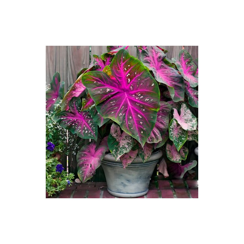 - Unique purple& green: These caladium plants showcase stunning purple-centered leaves with green edges and eye-catching speckled patterns, perfect for enhancing your garden’s visual appeal.