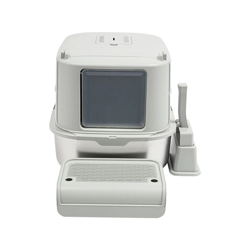 floraselling Stainless Steel Cat Litter Box with Lid Extra Large Covered Meta...