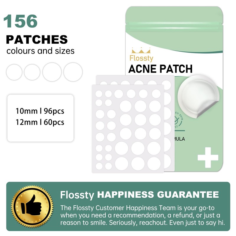- Reliable Service Our pimple patches should be removed after 6-8 hours. The Flossty team has successfully carried out tens of thousands of skin tests in Europe. We also offer first-class customer service - we are always at your disposal to answer your questions or concerns.