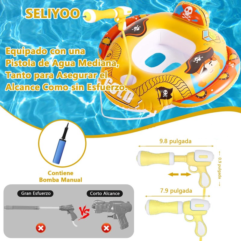 - ❶【Anillo de natación de tiburones con pistolas de agua】¡Abraza la aventura con nuestro diseño clásico de patrón de tiburón! Este flotador inflable para piscina mide 27 x 26 pulgadas, lo que lo hace perfecto para niños de 1 a 4 años y que pesen entre 21 y 24 libras. Cada juego incluye 1 flotador para piscina, 1 pistola de agua y 1 bomba para inflar. Precaución: ¡Debe usarse bajo la supervisión de un adulto!