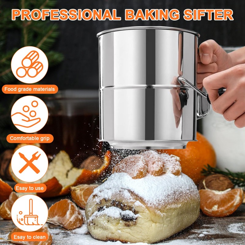 This 8 cup stainless steel flour sifter is a must-have tool for every baking enthusiast, making your baking experience easier and more refined.